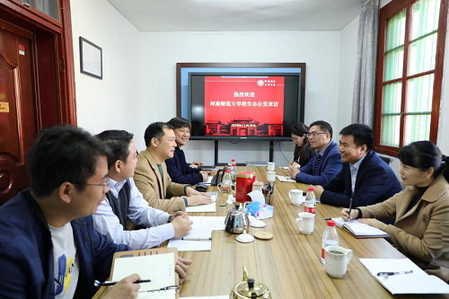 11月19日上午,我校招生办公室一行到河南大学进行调研学习,河南大学招生负责人南晗对我校招生办公室一行的到来表示热烈欢迎,康海军主任对河南大学招生办公室各位教师的热情接待表示感谢。