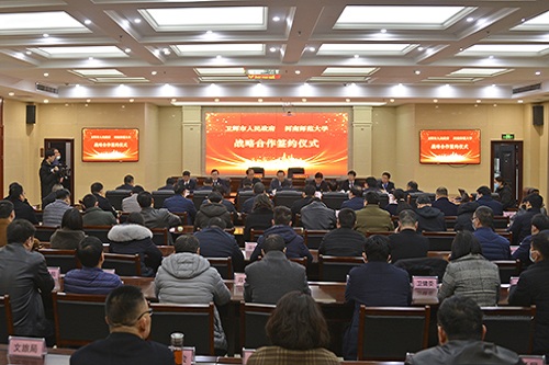 128日上午,我校与卫辉市人民政府举行战略合作签约仪式。签约仪式在卫辉市人民政府第七会议室举行。校党委书记赵国祥,党委副书记陈广文、梅宪宾,党委常委、副校长李学志、李雪山、马治军,党委常委、纪委书记、监察专员张尚字,卫辉市委书记梁常运,卫辉市委副书记、市长范士富,卫辉市政协主席田贞等市四大班子领导出席签约仪式。我校以及卫辉市相关部门负责人参加会议。