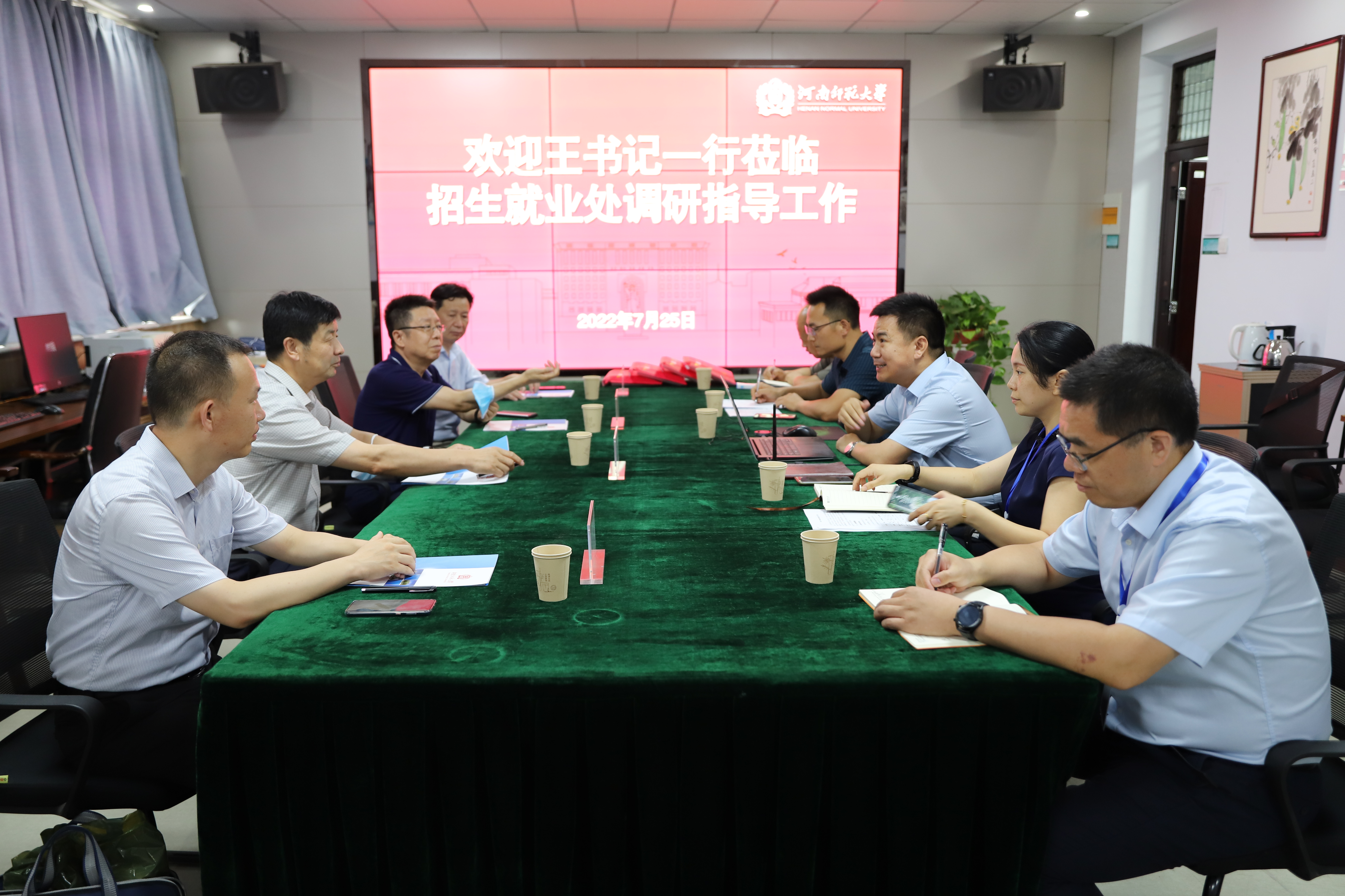 7月25日下午,校党委书记、校长王宗敏,校党委常委、副校长马治军到招生就业处调研指导工作并慰问一线工作人员,党政办和校纪委(监察专员办公室)综合室主要负责人陪同调研。