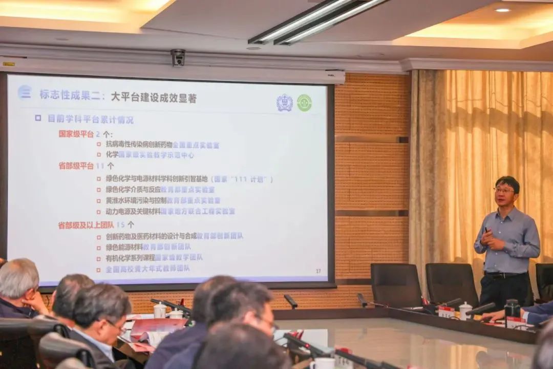 专家组组长丁奎岭院士主持论证环节。与会专家对学科建设方案进行充分论证,对化学学科近年来建设成效表示了充分肯定,建议学科进一步面向国家战略需求和河南经济发展建设需要,强化教育科技人才一体化部署,积极争取各级地方政府的政策和资源支持,进一步凝练学科发展方向,注重学科交叉融合,突出学科特色,争取早日实现“双一流”突破。