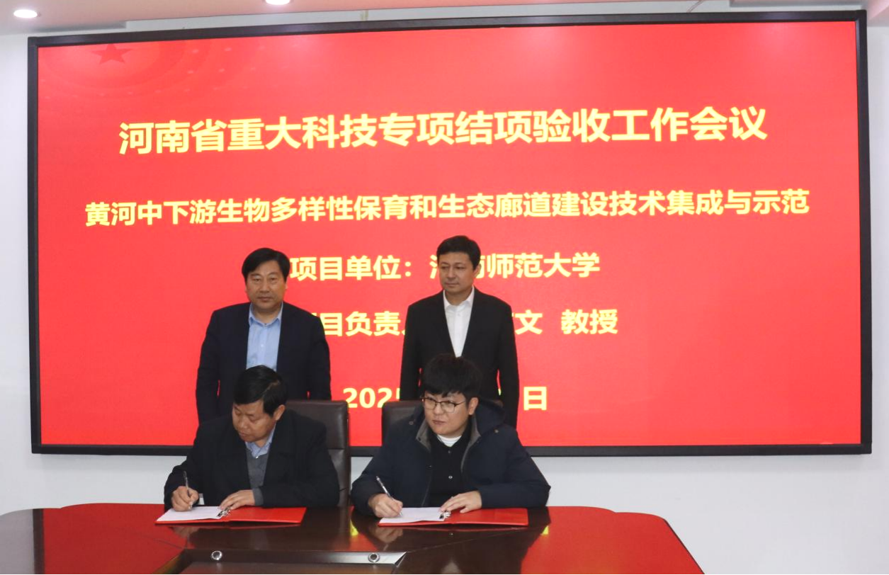 陈广文教授代表项目组与濮阳县政府签订转让协议,将“黄河中下游生物多样性保育和生态廊道建设技术集成与示范”项目的技术无偿转让予濮阳县政府。
