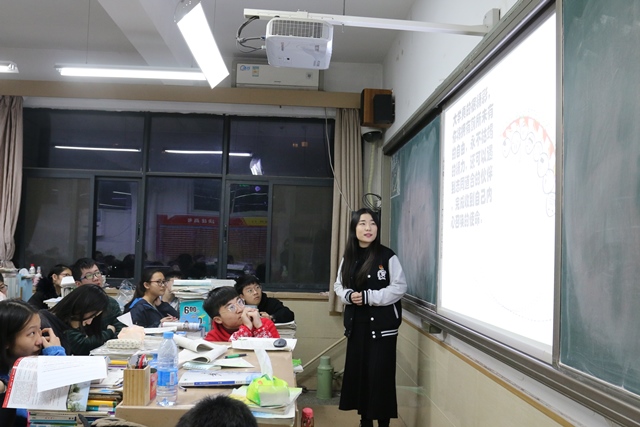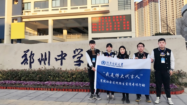 据校团委、招生办公室“我是师大代言人”2018年寒假社会实践活动要求,为广泛宣传我校办学成就和办学特色,吸纳更多优质生源报考我校。2月4日晚,国际教育学院实践小组赴郑州中学开展招生宣讲活动。本次宣讲由郑州中学2014级优秀毕业生王帆主持,三个“招生对口重点班级”共计180余人到场聆听。