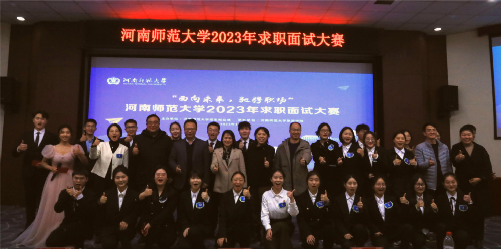 为提高我校学生求职面试水平,提升求职能力,助力学生高质量就业,12月9日下午,由招生就业处主办、旅游学院承办的河南师范大学2023年“面向未来,驰骋职场”求职面试大赛决赛于物理北楼报告厅成功举办,旅游学院党委书记冯峰、软件学院党委书记马新峰、电子与电气工程学院党委书记高飞、招生就业处副处长宁敏、上海亚湾酒店管理有限公司人才发展部总监谢珊珊出席并担任本次比赛的评委,30名参赛选手、300余名学生观众到场参加。