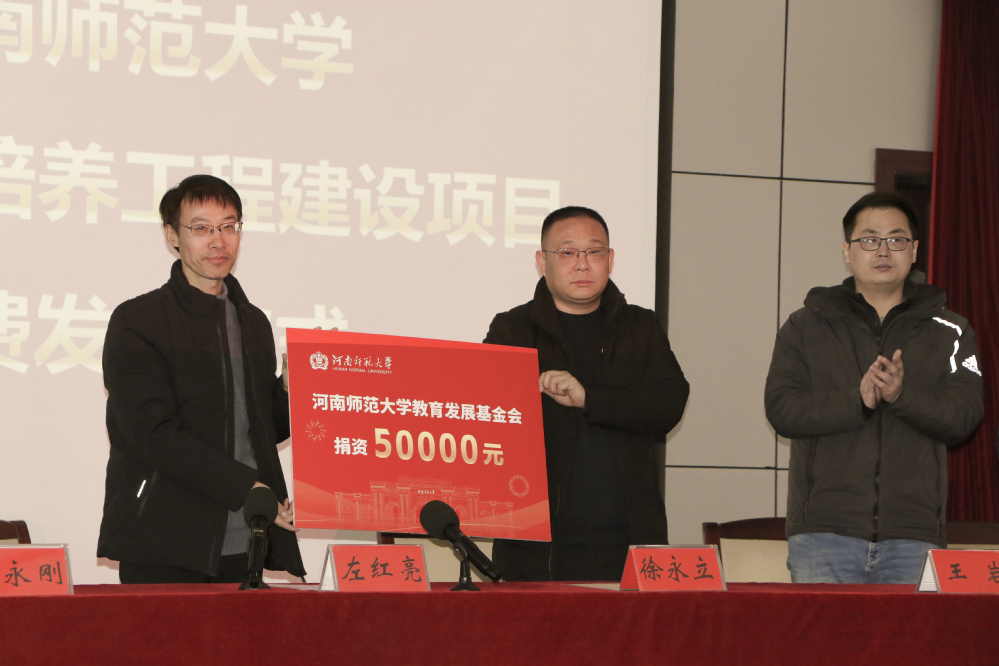 长垣一中是我校的优质生源基地,近三年考取河南师范大学的总人数多达360余人,左红亮代表河南师范大学向长垣一中长期以来对我校建设、发展的大力支持表示衷心的感谢和崇高的敬意!随后,介绍了河南师范大学的基本情况以及报考河南师范大学的优势,并代表河南师范大学教育发展基金会,向长垣一中捐赠5万元,用于促进两校师生间的交流联络、教师信息化能力提升。期待与长垣一中加深协作,通过“请进来”“走出去”等形式共建共享教育教学资源,同心同行,携手育人,为国育才!