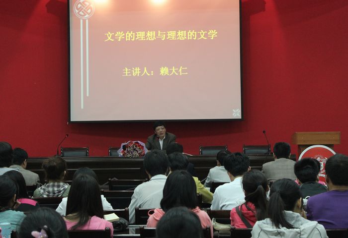 赖大仁教授围绕文学与审美理想的关系和对当今文学现象、作品的认识两个方面进行了两个多小时的讲解。他指出,文学与审美理想的关系通过对美好事物的肯定与发扬、对丑恶事物的否定与批判、对某些令人困惑的现象的反思来表现出来。文学的大发展、大繁荣,不仅要健康,更应该满足人民群众日益增长的精神文化需要,引领思想价值的潮流。在谈到审美理想对文学的影响时,赖教授创造性的提出了“审美理想是文学的太阳”这一观点。他认为,当今文学总体上是在发展,但是由于对理想本身、文学与政治的关系、文学与社会现实的关系缺乏理性辩证认识,使得当代大多文学作品缺少思想含量、正确的道德态度及审美理想。赖教授还以《咳嗽天鹅》、《1956年的债务》、《隆冬》三部作品为例,为在场的同学分析了文学中蕴含的审美理想。讲座结束后,赖教授还积极回答类现场同学们提出的问题。
