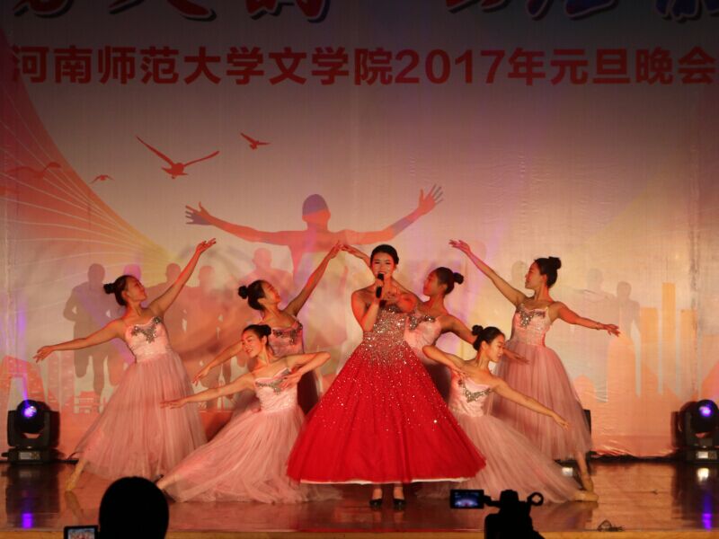 晚会在活力四射的开场舞中拉开序幕。整场晚会形式多样,小品、相声、歌曲、舞蹈、舞台剧等节目汇集一堂。相声《名著新解》、小品《总监驾到》以新鲜的段子、齐整的贯口与诙谐逗趣的语言逗得观众捧腹大笑。舞台剧《夜的黎明》中,讲述了五位大学新生初入大学迷茫之后虚度光阴,经过老师教导幡然醒悟重拾理想的故事,再次表达了学子“不忘初心,圆梦师大”的梦想追求。情景剧《红高粱》演员融合说唱,以第三人称视角向大家讲诉了九儿带领队伍与敌人同归于尽,用自己的生命在山东高密大地上谱写了爱与征服,野心和意志的传奇故事,淋漓尽致地展现了华夏子孙充满血性的民族精神。由文学院团委、学生会带来的“T台秀”中,主席团及学生干部代表从幕后走向台前,衣装精致的气质走秀惊艳全场,也将晚会推向高潮。非物质文化遗产保护协会为观众带来耳熟能详的《梨园荟萃》。同学们在声情并茂、抑扬顿挫的戏曲联袂中真切感受到了中国优秀传统文化的魅力。舞蹈《咏春》、《Perhaps》优雅动人,洋溢着青春的气息。《演员》、《悟空》、《告白气球》、《小镇姑娘》等歌曲串烧引得观众尖叫连连、掌声不断。诗朗诵《放飞中国梦》激情洋溢,学子用铿锵有力的声音抒发了努力拼搏实现中国梦,报效祖国的强烈情感。歌舞《天佑中华》深情表达了对祖国美好明天的期盼。最后,晚会在情景诗朗诵《豫见师大,遇见你》中落下帷幕。