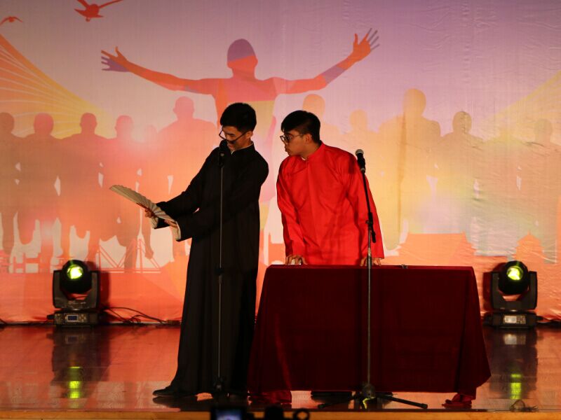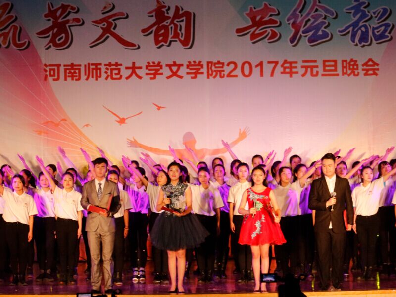 12月25日晚,文学院“流芳文韵·共绘韶光”2017年元旦晚会在师大附中西校区礼堂精彩上演。文学院党委书记王俊杰,党委副书记高飞,校团委老师孙晓,文学院各教研室老师、各年级辅导员出席现场,与五百余名学生共同观看了晚会。