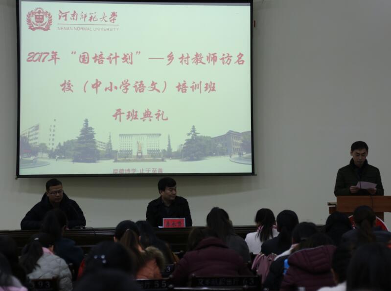 11月23日上午,“国培计划”——2017年乡村教师访名校(中小学语文)培训班典礼在文学院报告厅举行。文学院院长李永贤、副院长陈鹏以及中学、小学班主任和全体参训老师一起参加了开班典礼。典礼由陈鹏副院长主持。