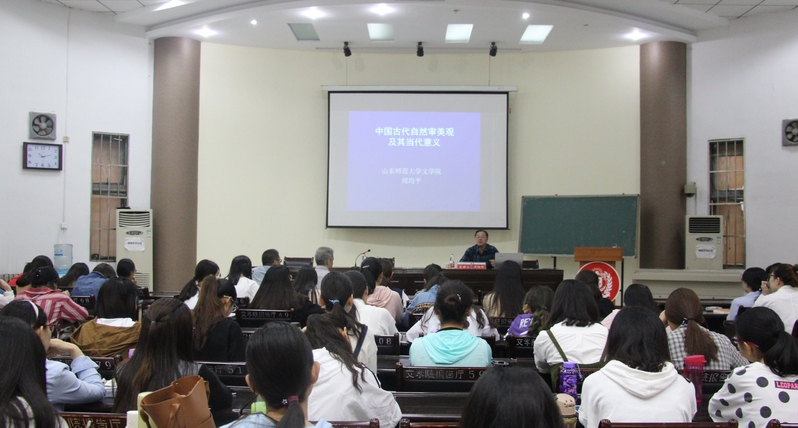 521日上午,应文学院邀请,山东师范大学博士生导师周均平教授于文学院报告厅作了题为“中国古代自然审美及其当代意义”的学术报告。文学院各教研室教师代表及百余名学生聆听了此次报告。报告会由文学院教授赵荣栓主持。