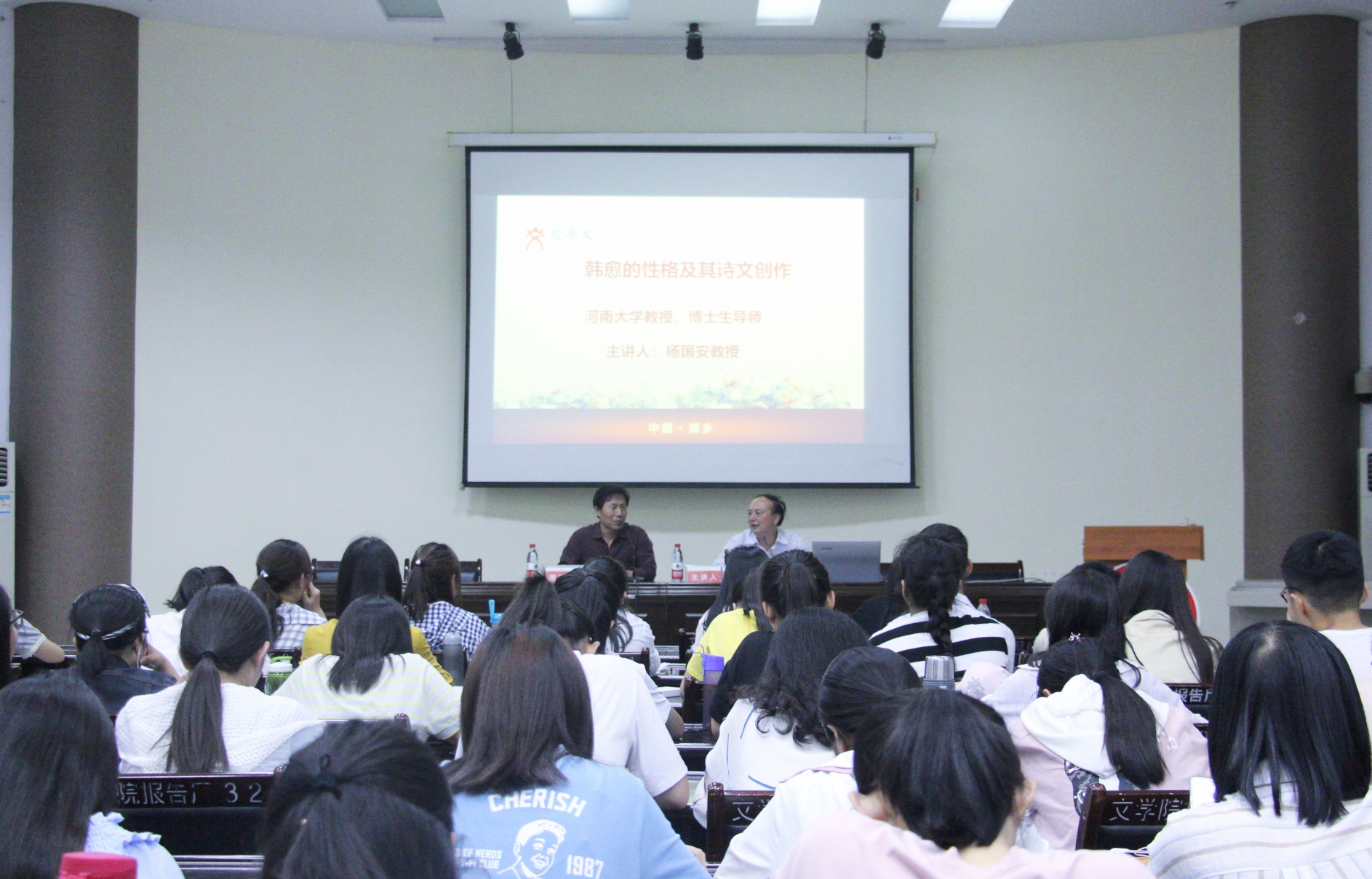 5月23日晚,应文学院邀请,河南大学文学院教授、博士生导师杨国安在崇文楼报告厅作了题为“韩愈的性格及其诗文创作”的学术报告。文学院骨干教师及120余名学生代表共同聆听了此次讲座。