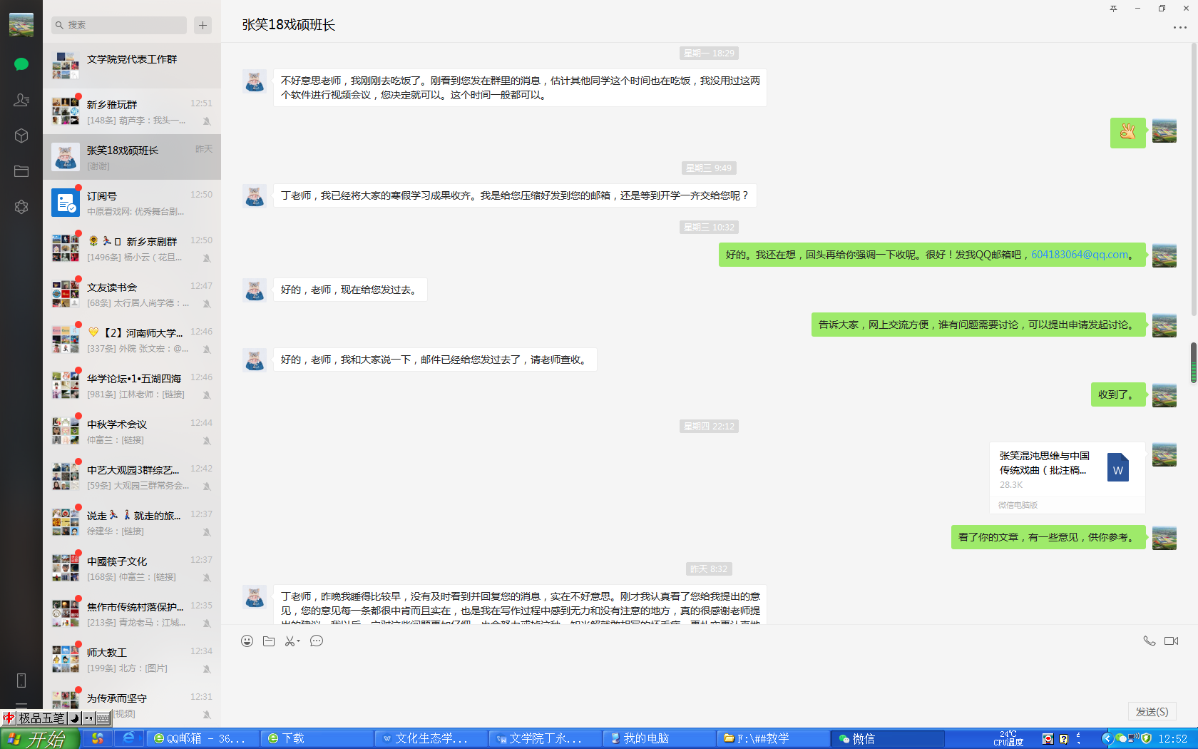 老师对于提交的部分论文进行了批改和反馈。并与学生通过私信的方式与该同学进行了交流(有时候经过学生同意,会把老师批注稿分享到群中,供大家学习,以便共同提高)。