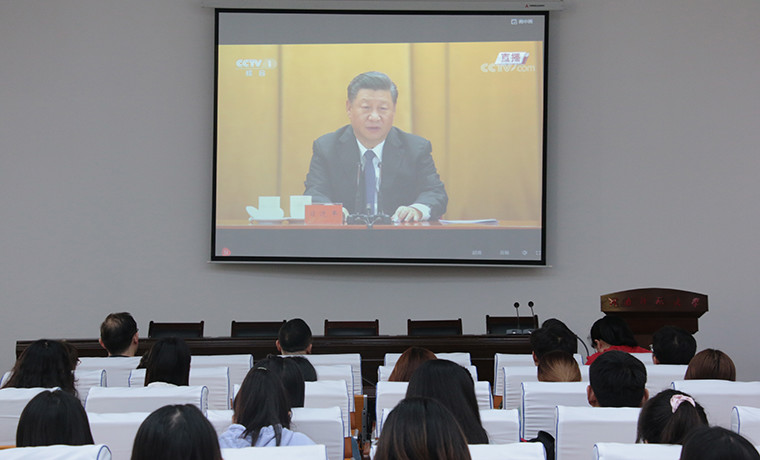 10月23日上午,文学院教师、学生代表在崇文楼一楼报告厅观看纪念中国人民志愿军抗美援朝出国作战70周年大会直播,相关负责人积极组织各位学生在寝室及时收看直播,学习大会精神。