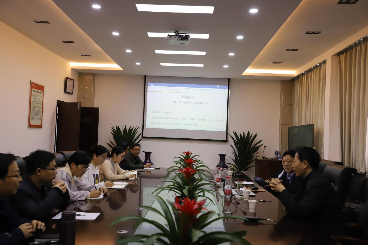 在座谈会上,查洪德以“书为我用——谈读书治学”为主题,讲述从毕业到成为学者的亲身经历,点明做学问的关键是专注,鼓励我院师生不懈追求。他指出,对于研究方向的选择,一是要细心、踏实,二是要明确学问的非绝对性和无限上升性。他以近年《诗经》研究现状和《窦娥冤》争论点为例,从元代各体文学中举例说明,在元代这一乱世中,反封建、反传统这一传统的元代文学主题论断不符合元代文学的实际。他道出,文学史研究要深入历史和文化,把文学置于大背景之中。随后,查教授就“为何读书、如何读书、多读好书”进行深入剖析,揭露了读书一要选择可靠之书,二要选择启迪之书,并将学问总结为“读书、总结、思考”。