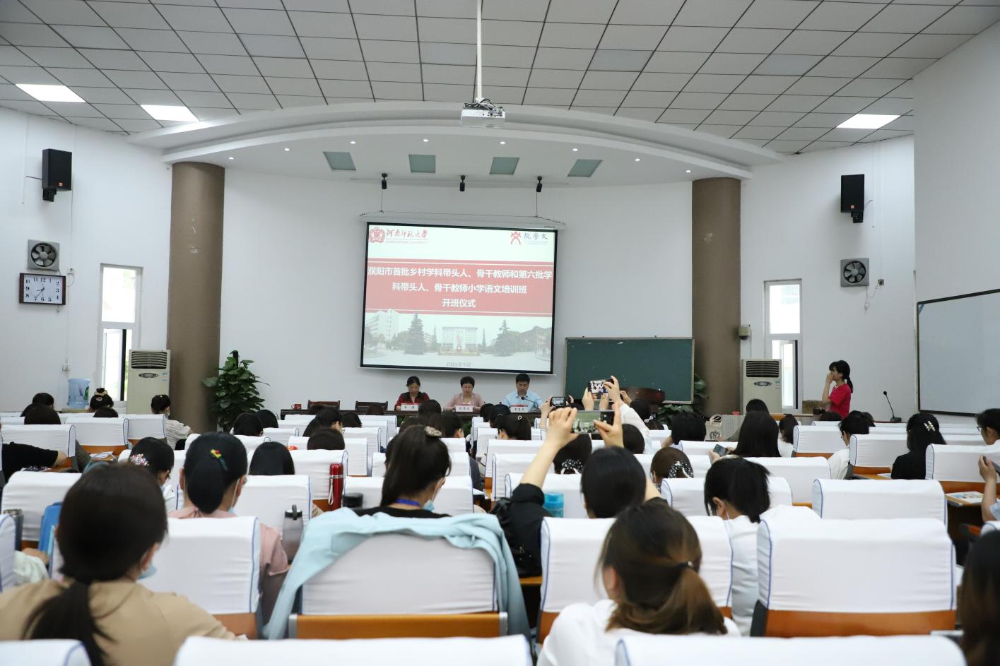 5月23日上午,濮阳市首批乡村学科带头人、骨干教师和第六批学科带头人、骨干教师培育对象(小学语文)培训班开班仪式在崇文楼一楼报告厅举行,文学院院长赵黎波、副院长王清杰、文学院教师平原及百余名濮阳市骨干教师学员参加此次仪式。仪式由文学院副院长王清杰主持。
