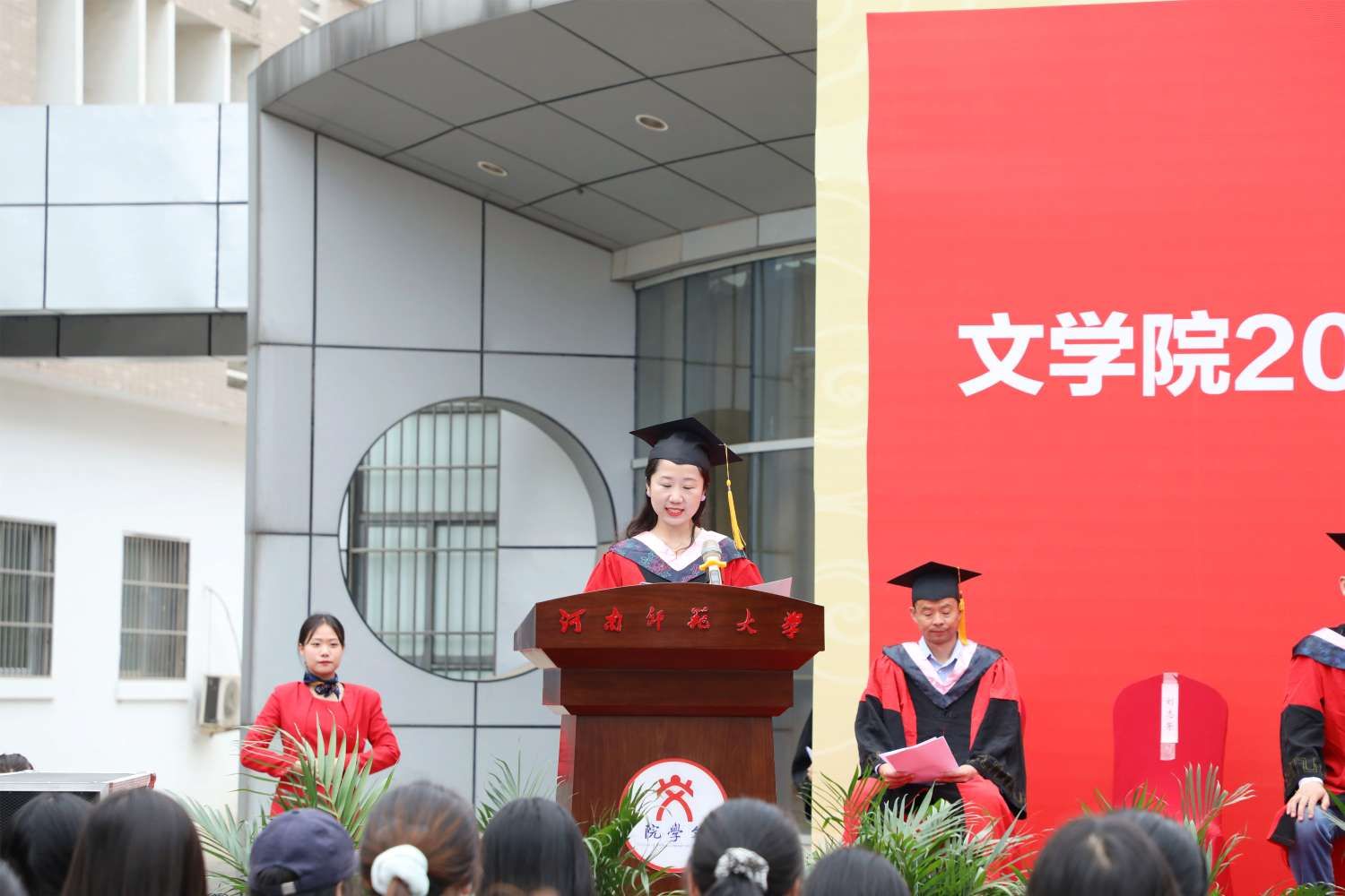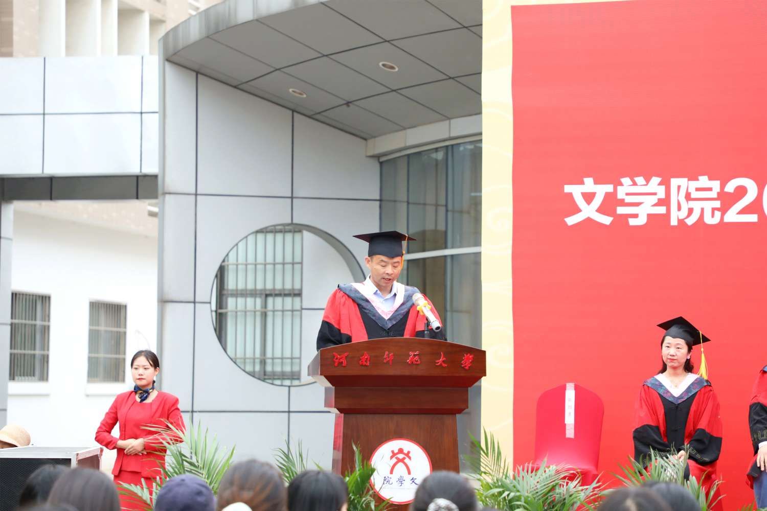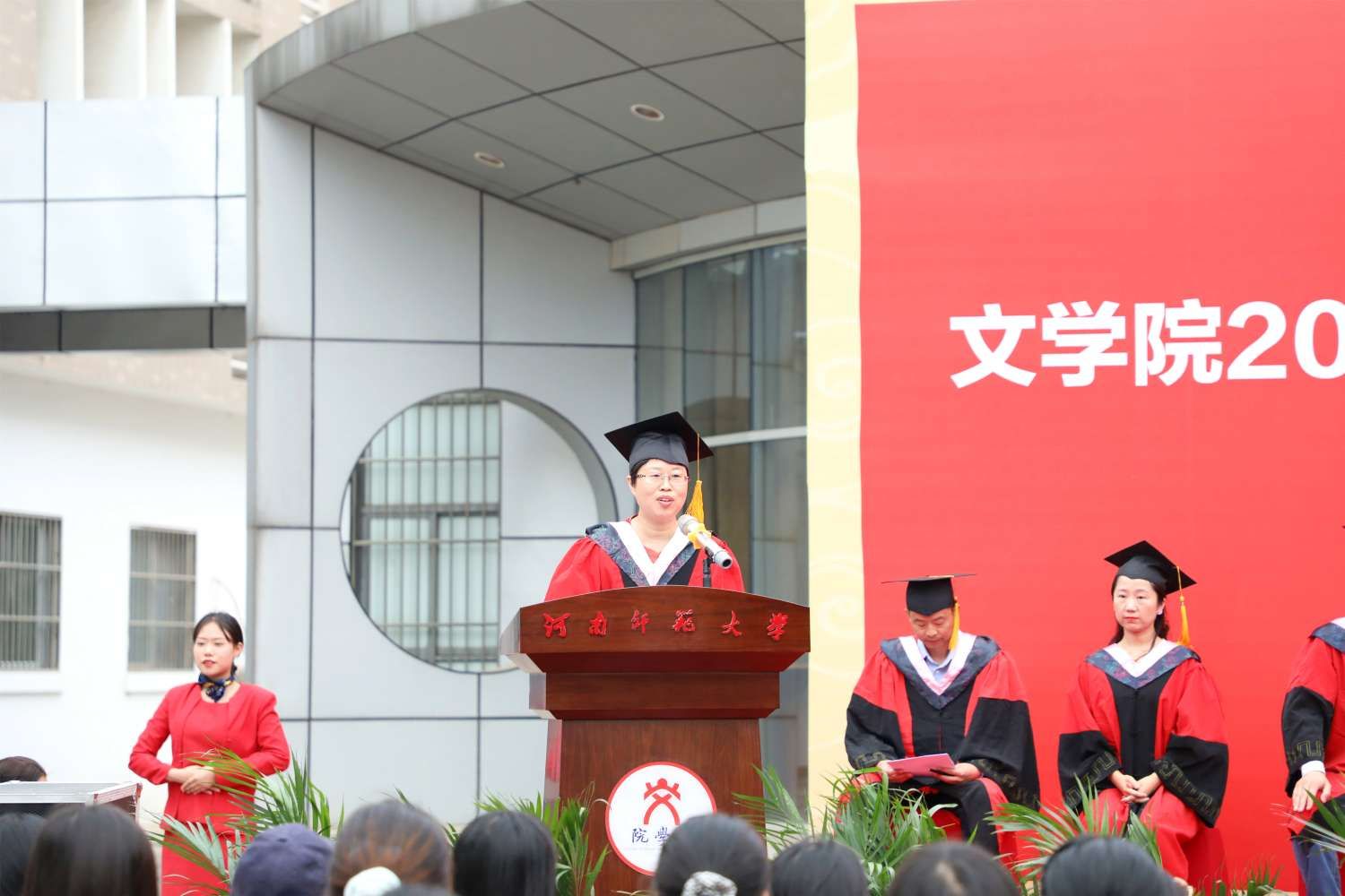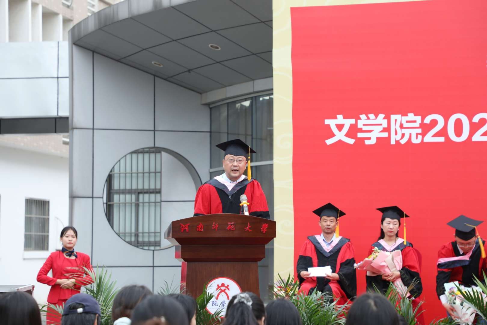 院长赵黎波致辞。她围绕“信仰”“勇气”“担当”三个关键词对毕业生殷切嘱托。期望即将迈出校门的师大文院人坚定信念,向善向美,在困境中披荆斩棘;浸润文学,直面风雨,以诗意、情怀、勇气去面对生活和时代的挑战;百尺竿头,更进一步,接过历史的接力棒,努力创造新的辉煌。她以“青年初心不忘,定当前程似锦”寄语毕业生,希望文学能为毕业生人生之路筑起一座抵御风雨的屏障,师大文学院成为毕业生勇往直前最坚强的后盾。