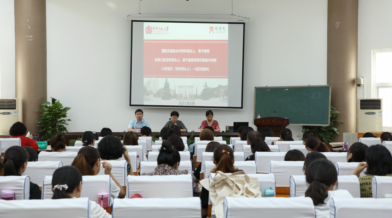 6月24日上午,文学院在崇文楼一楼报告厅举行濮阳市首批乡村学科带头人、骨干教师和第六批学科带头人、骨干教师培育对象集中培育小学语文开班典礼。学院院长赵黎波教授、副院长王清杰、本次培训班班主任平原及80余名濮阳市参训学员老师参加本次开班仪式。仪式由王清杰主持。
