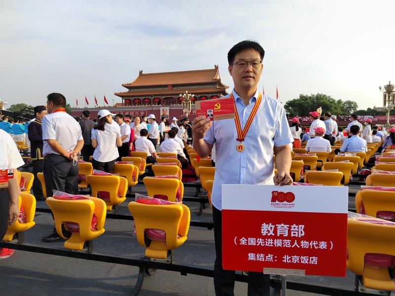 7月1日上午,庆祝中国共产党成立100周年大会在北京天安门广场隆重举行。我院1999届校友黄迎辉受邀参加,作为教育部先进模范人物代表到天安门广场观礼。