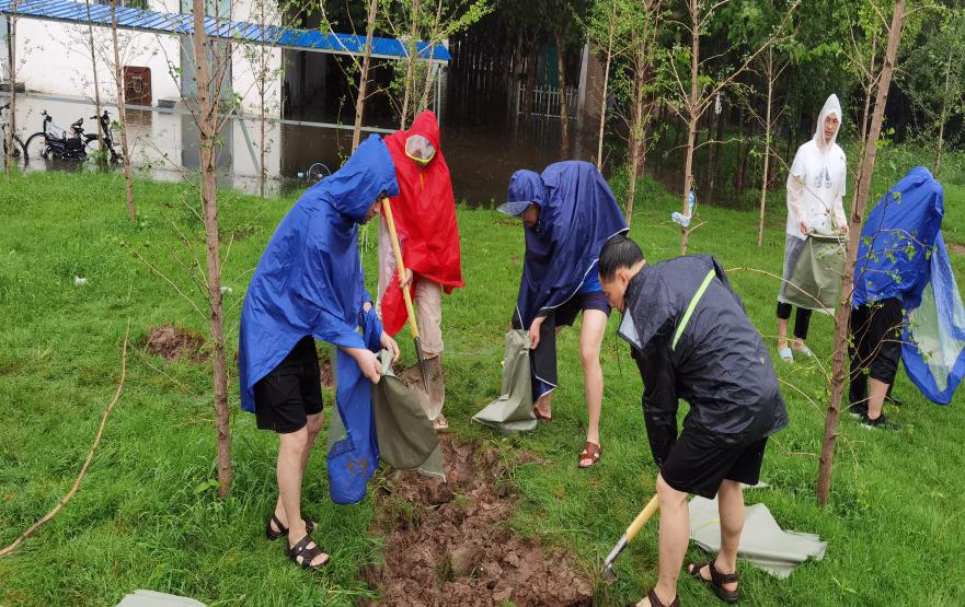 在暴雨来临前,学院党委提前部署未雨绸缪,完善防汛工作预案,成立防汛突击队,加强师生防汛知识教育,加大雨季安全检查工作,对实验室、资料室以及全体教职工的办公室的用电等重点部位逐一排查,不留隐患,提前购置沙袋等防汛器材,以备不时之需。7月20日,暴雨如约而至,学院党委第一时间落实校内学生的生活状况和降雨严重地区学生的情况。考虑到东区水位的不断上涨,学院党委安排党员24小时,昼夜值守在东12党员工作站。执行学生登记、物资配送、安全转移、秩序维护、心理疏导等工作。风雨中学院党委组织防汛突击队员趟着没过小腿的雨水,赶赴学院垒起沙袋,保障了学院设备和财产的安全。暴雨中学院党员冲锋在前,学院教师积极响应,在最危急的时刻学院老师纷纷报名参加到抗洪救险的工作当中,成立第二防汛突击队共同参与值守、搬运物资、装沙袋等工作。在校党员学生第一时间成立党员先锋队,担负起守卫同学的责任。