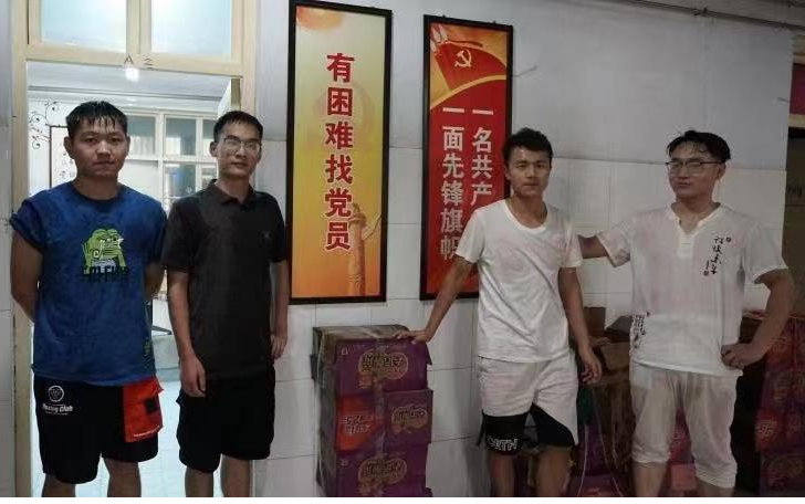 7月22日至24日,为解决校内积水较深情况下学生就餐问题,学院积极协调社会物资、社会车辆进行捐赠,为学生购买饮用水、方便面、面包等生活物资。学院党委书记段勃、院长赵黎波、党委副书记张颜勇等党政领导、党员教师坚守一线,乘坐挖土机,为留校学生送去500余箱生活物资。段勃来到学生宿舍,关切询问学生情况和生活需求,强调学校和学院会尽全力保障学生的安全与生活,鼓励留校学生在学校和学院的指导下,团结一心,冷静乐观,共同克服困难。学生党员蒋悦为安抚大家情绪,打起快板,与同学们展开畅聊,安慰雷暴雨停电状态下学生的情绪。董泽润、周恩涛等男生冒着大雨、蹚着已没过小腿的积水一趟趟的往返于东西区运送物资。