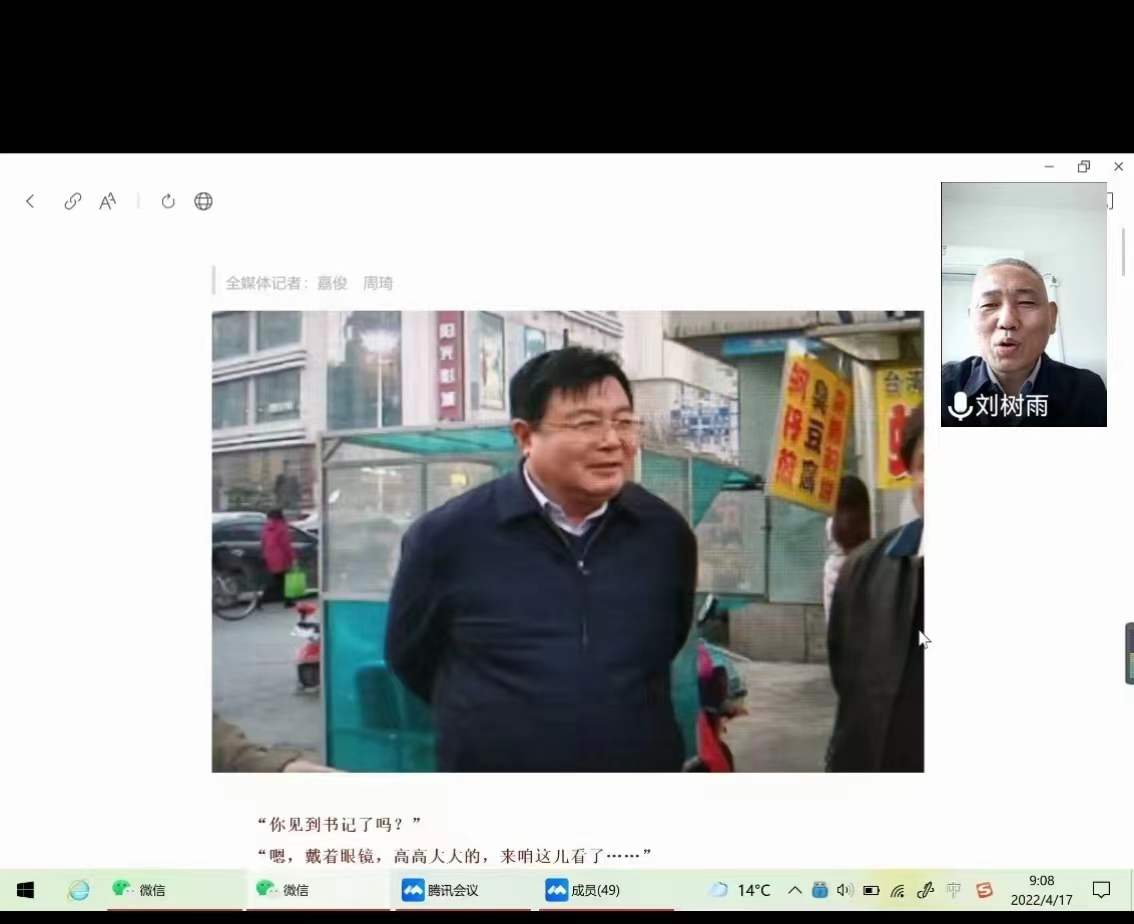 4月17日上午,新乡广播电视台副台长刘树雨应邀为文学院师生作题为“融媒体时代的记者本领”专业实习专题讲座。本次讲座通过腾讯会议平台线上开展,由学院副院长李占伟主持。