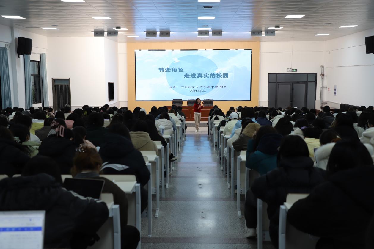 为充分调动学生实习积极性,更好地了解教育实践的内容安排和注意事项,12月22日下午,文学院在万人餐厅三楼树蕙堂举办2022级师范生教育实践专题报告会,邀请河南师范大学附属中学教师、河南省教学名师陶然作题为《转变角色 走进真实的校园》的专题讲座。文学院副院长周惠、2022级辅导员陈光裕以及2022级全体师范生参加此次活动。